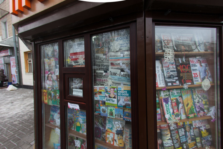 По телевидению в Донецке показывают только российские каналы и пропагандистские телеканалы ДНР, которые выходят на оборудовании и в студиях, отобранных у бывших городских частных и государственных каналов. Та же ситуация и с радиостанциями. Все довоенные местные газеты, кроме российских «дочек», закрыты. Через правительство и разрешенные общественные организации финансируются 16 новых районных газет и десяток новых же «областных». На агитацию деньги не жалеют, и она тут тотальна, идет отовсюду.