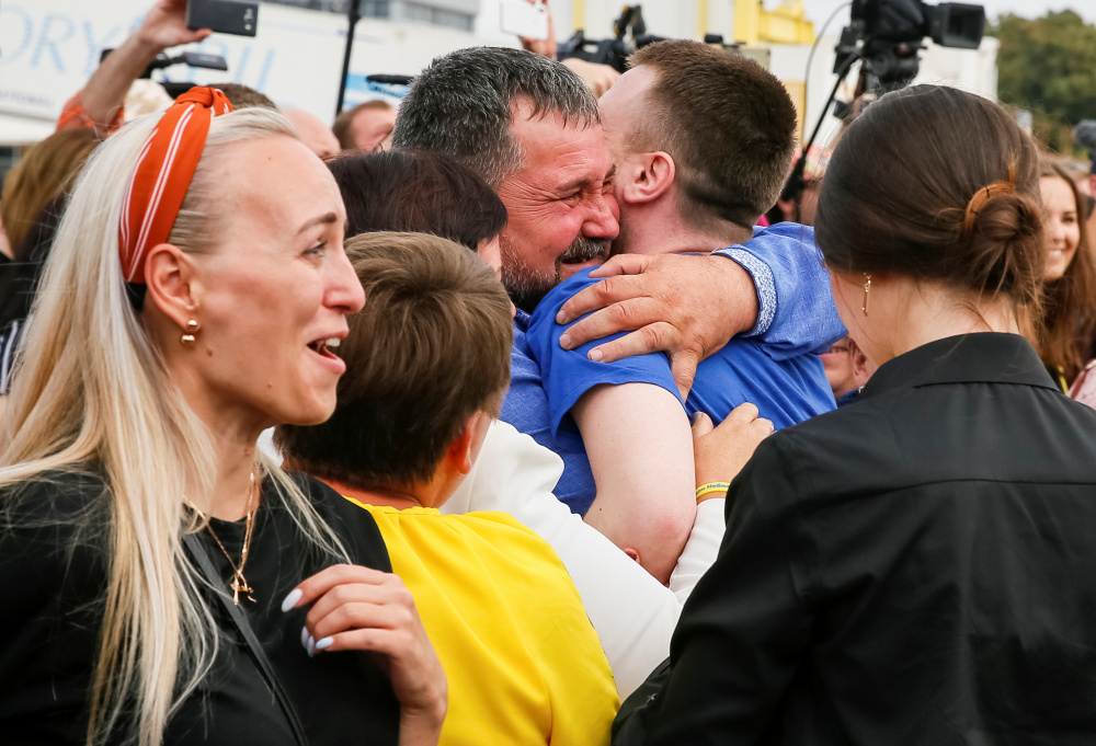 Встреча вернувшихся по обмену украинцев была трогательной и эмоциональной. Фото REUTERS/Gleb Garanich/Scanpix/Leta