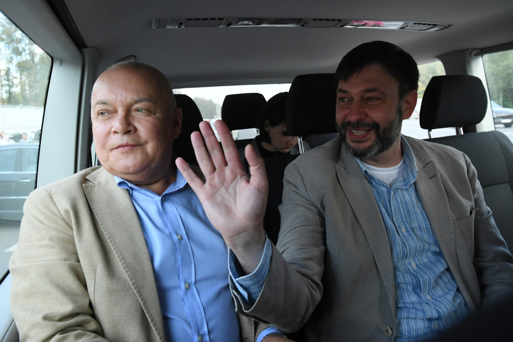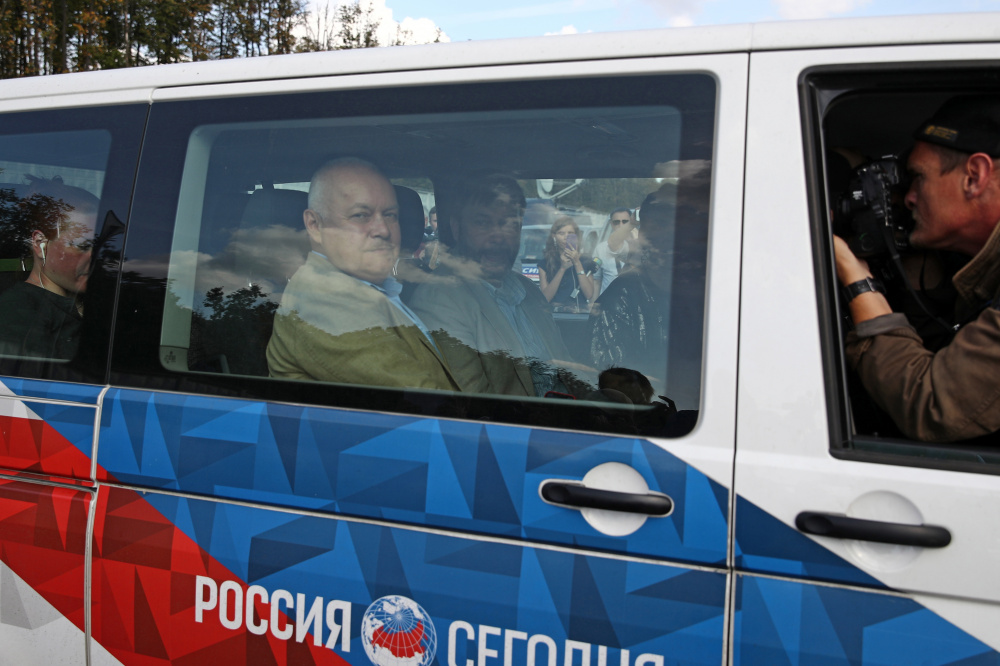 Вышинского и Киселева увозят отдельно на автомобиле «России Сегодня». Фото Sergei Bobylev/TASS/Scanpix/Leta