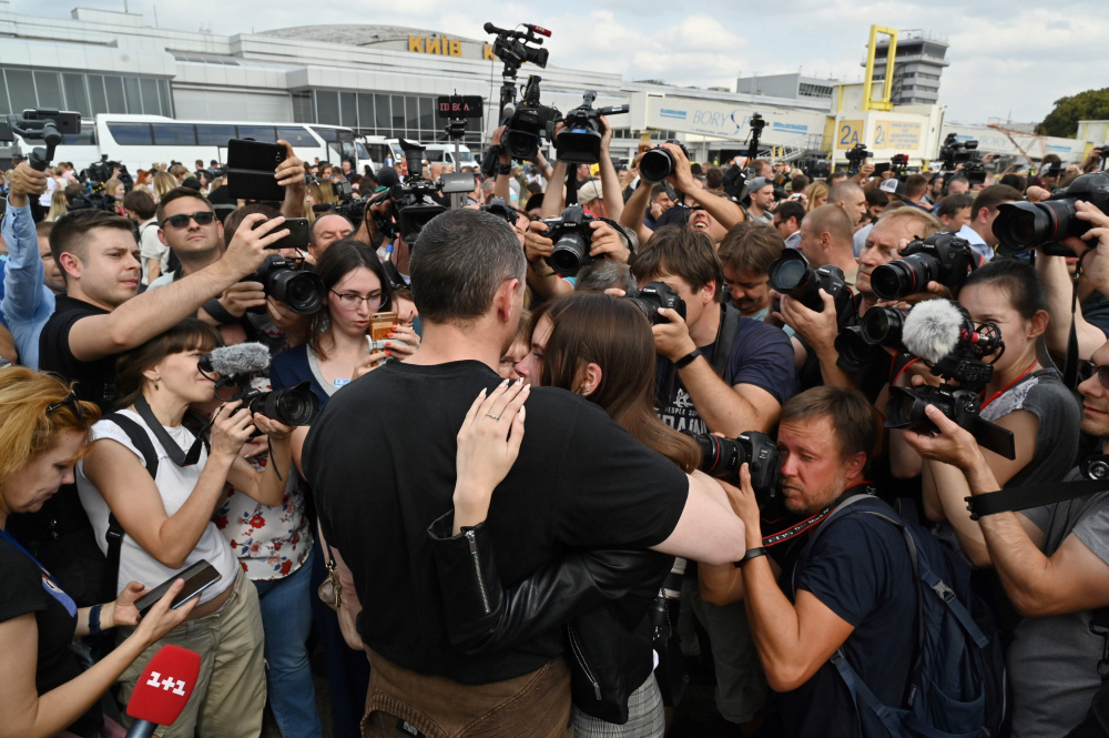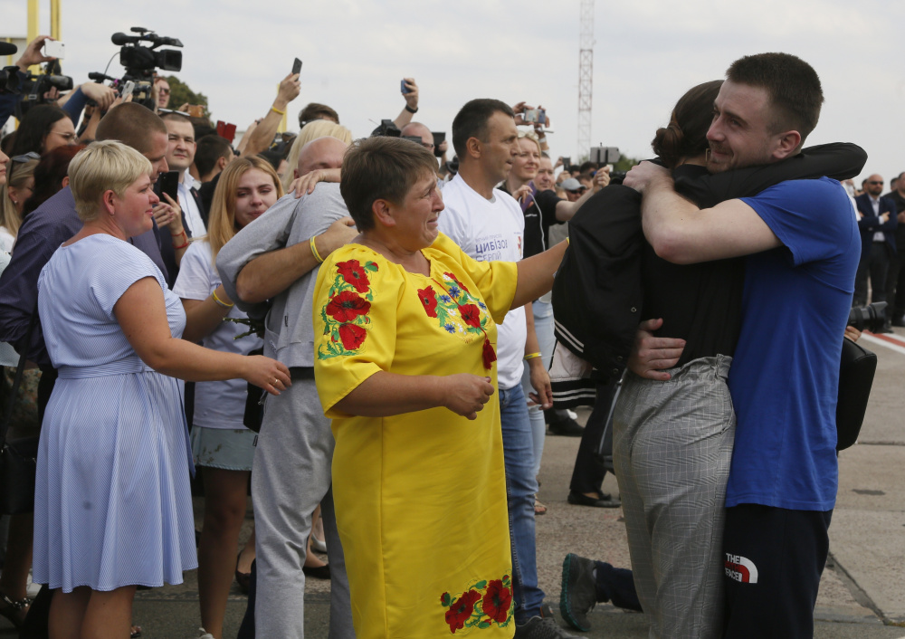 Среди прибывших на Украину заключенных — Сенцов и Кольченко. В Киеве борт с пленными встречали президент Украины Владимир Зеленский, министр МВД Арсен Аваков, родные и близкие освобожденных а также все, кто хотел поприветствовать вернувшихся украинцев.