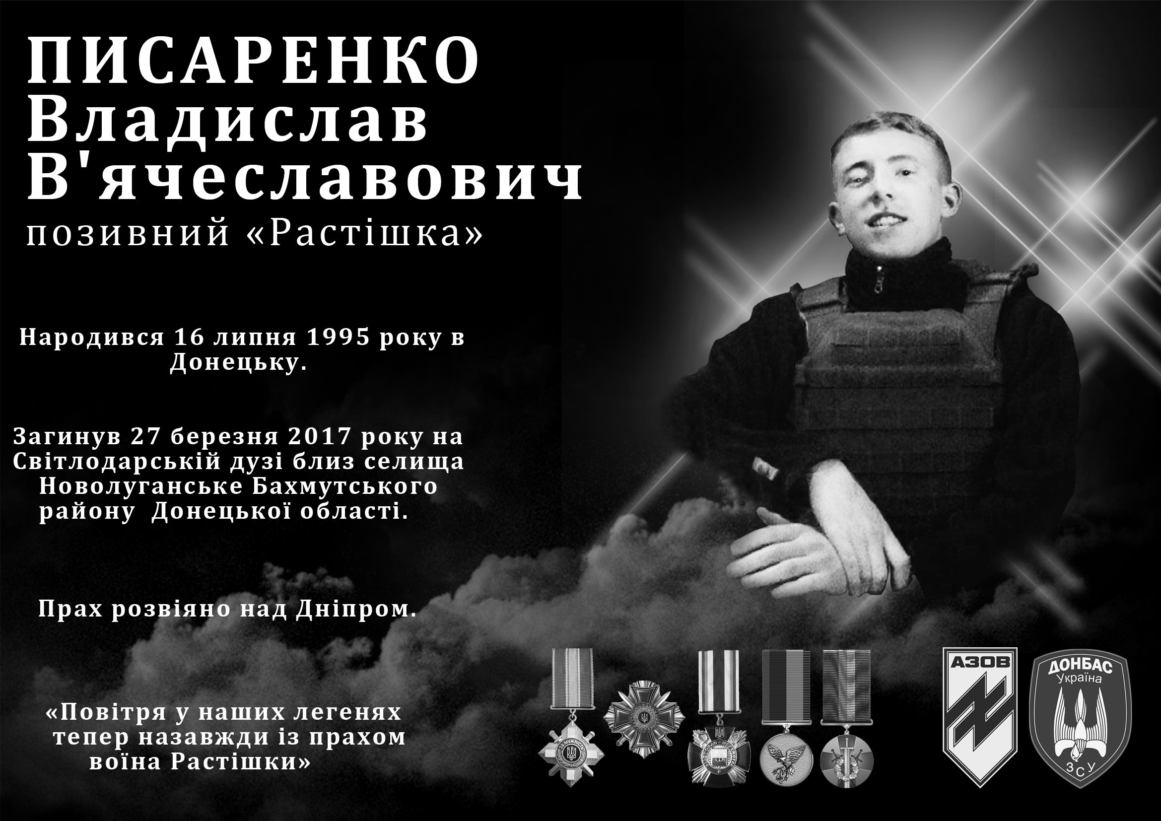 На главном корпусе Донецкого медицинского университета в Мариуполе в скором времени будет висеть мемориальная доска в честь погибшего в боях студента стоматологического факультета и одного из самых юных ультрас донецкого «Шахтера» Владислава Писаренко. Студент с позывным «Растишка» воевал в одном подразделении полка «Азов» вместе со своим учителем — заведующим кафедрой хирургической стоматологии профессором Игорем Николаевичем Матрос-Таранец.