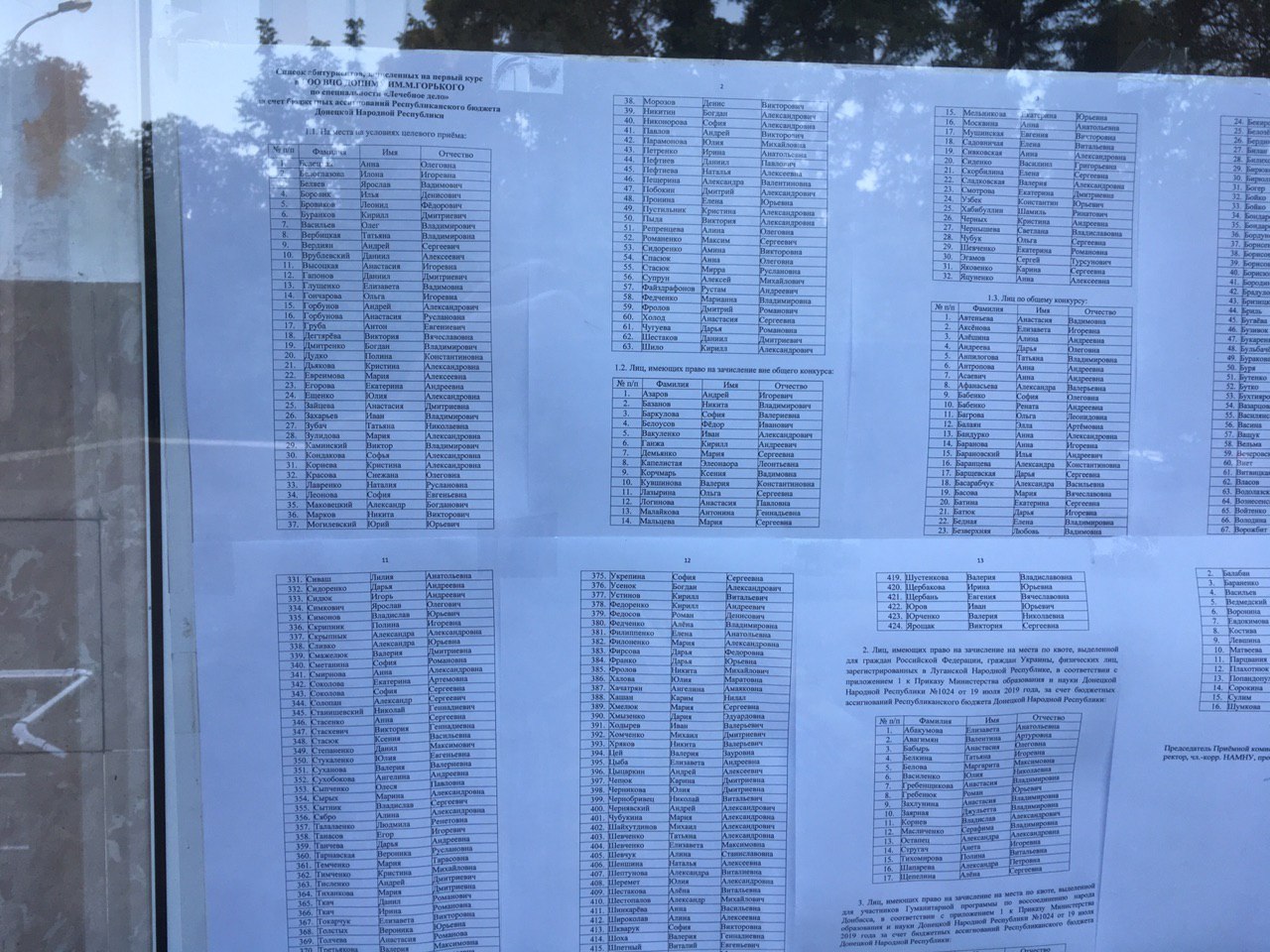 Списки зачисленным по трем бюджетным программам ДНР студентов «Донецкого национального медицинского университета». Август 2019 года. Фото Spektr. Press