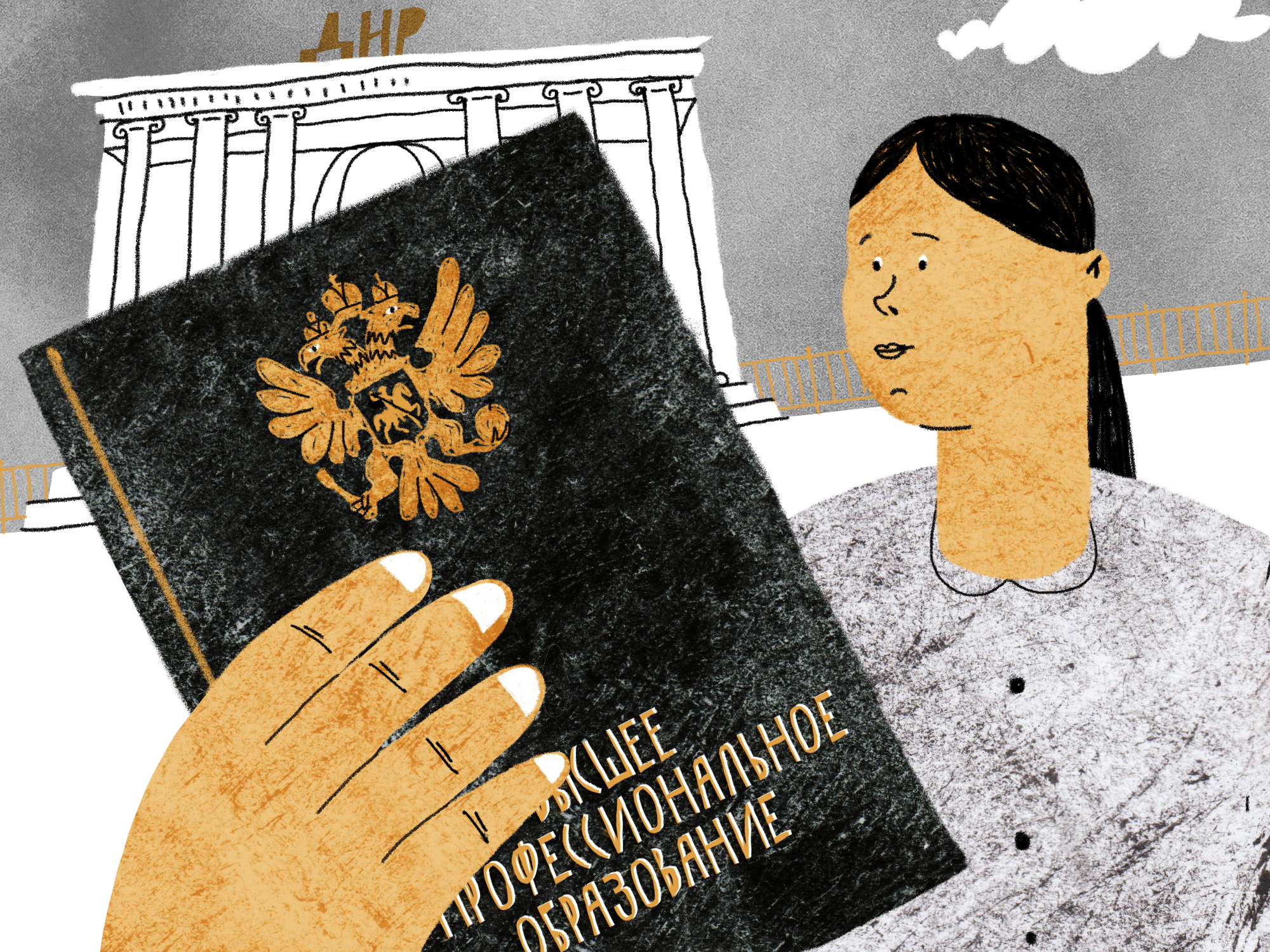 «Нет, дипломы у нас за деньги есть, но они „донецкие“, [российской] аккредитации у нас нет, — сразу предупредила меня старшекурсница Юлия, подрабатывавшая в комиссии. — Сама куда пойду со своими английским и немецким? Еще не знаю, но собираюсь в полицию ДНР, какое-то место найдется!».