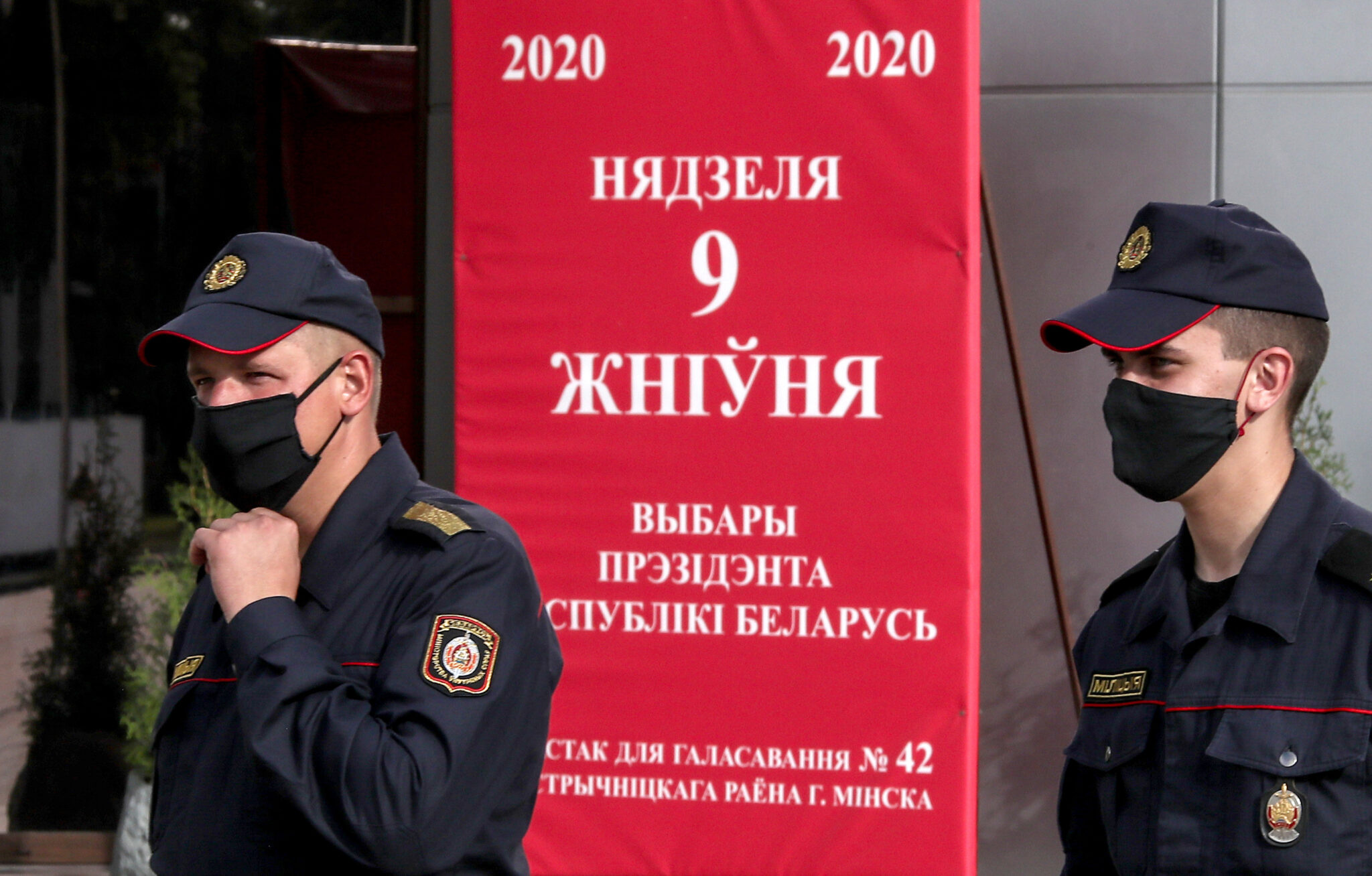 Силовики у избирательного участка в Минске. Фото Valery Sharifulin / TASS / Scanpix / Leta