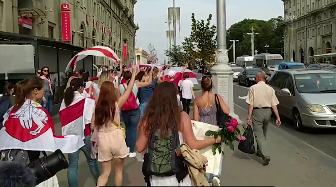 Акция протеста женщин в Минске. Скриншот видео Tut.by