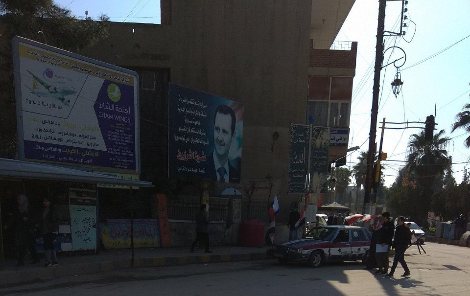 Плакат с Башаром Асадом и автомобиль с российским флагом. Фото предоставлено для публикации в Spektr. Press