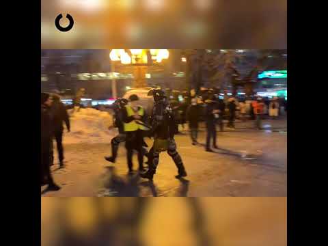 На Цветном бульваре в Москве во время акции в поддержку Алексея Навального протестующие атаковали автомобиль с мигалкой и правительственными номерами АМР. У машины разбито стекло, водителю выбили глаз, мужчина госпитализирован.
